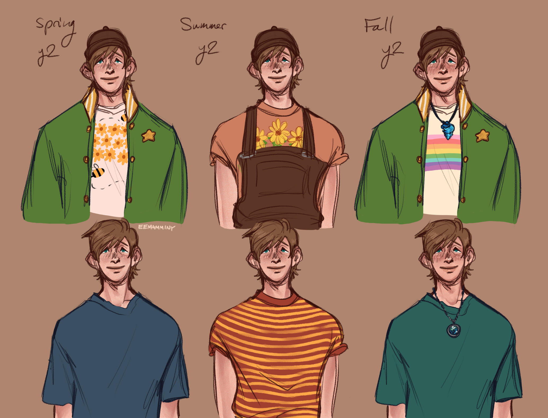 Background: Mallory was born in Pelican Town, although he never knew who exactly was his father. His mother was cold and distant to him, so for his first few years his grandparents raised him until he and his mother were able to move to Zuzu City. Even after they moved, he would spend every summer visiting his grandparents and making friends with the other kids in town.His grandparents instilled in him a love of animals and folk music, and taught him the kindness that he carries with him to this day. Each autumn Mallory would return to living with his mother which would make him so sad, as she offered little affection or even attention beyond the bare minimum to keep him cared for and fed. He looked forward to his summers in Stardew Valley more than anything else.When Alex moved to town following his mother's death, the two became best friends quickly. Although Mallory was four years older, he enjoyed looking out for the younger boy and the two were inseparable for a time.During his teenage years, Mallory moved to the other side of the country and was unable to visit again until adulthood. In the meantime he focused on education, studying to become a veterinarian up until learning of his grandparents' illness and subsequent deaths, which occurred back to back over a short span of years.Mallory was surprised to learn his grandparents left everything to him, and so he dropped out of grad school to live out his childhood dreams of following in his grandparents' footsteps. While getting to know everyone again in Pelican Town, he finds that Alex is surprisingly aloof with him, and Mallory makes it his personal mission to win over his childhood best friend again.