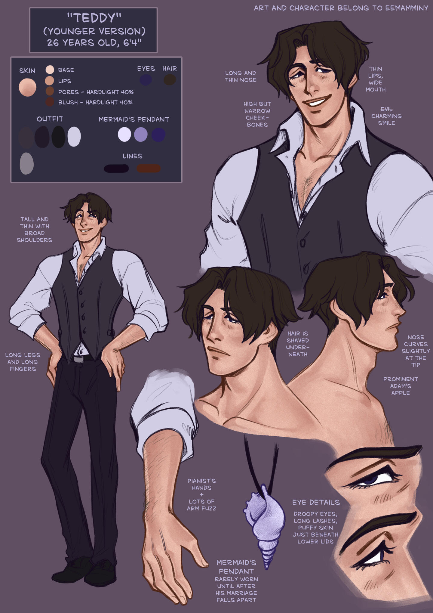 Physique: Average body type, a little bit on the softer side. Covers his body in baggy clothes to obscure his figure.